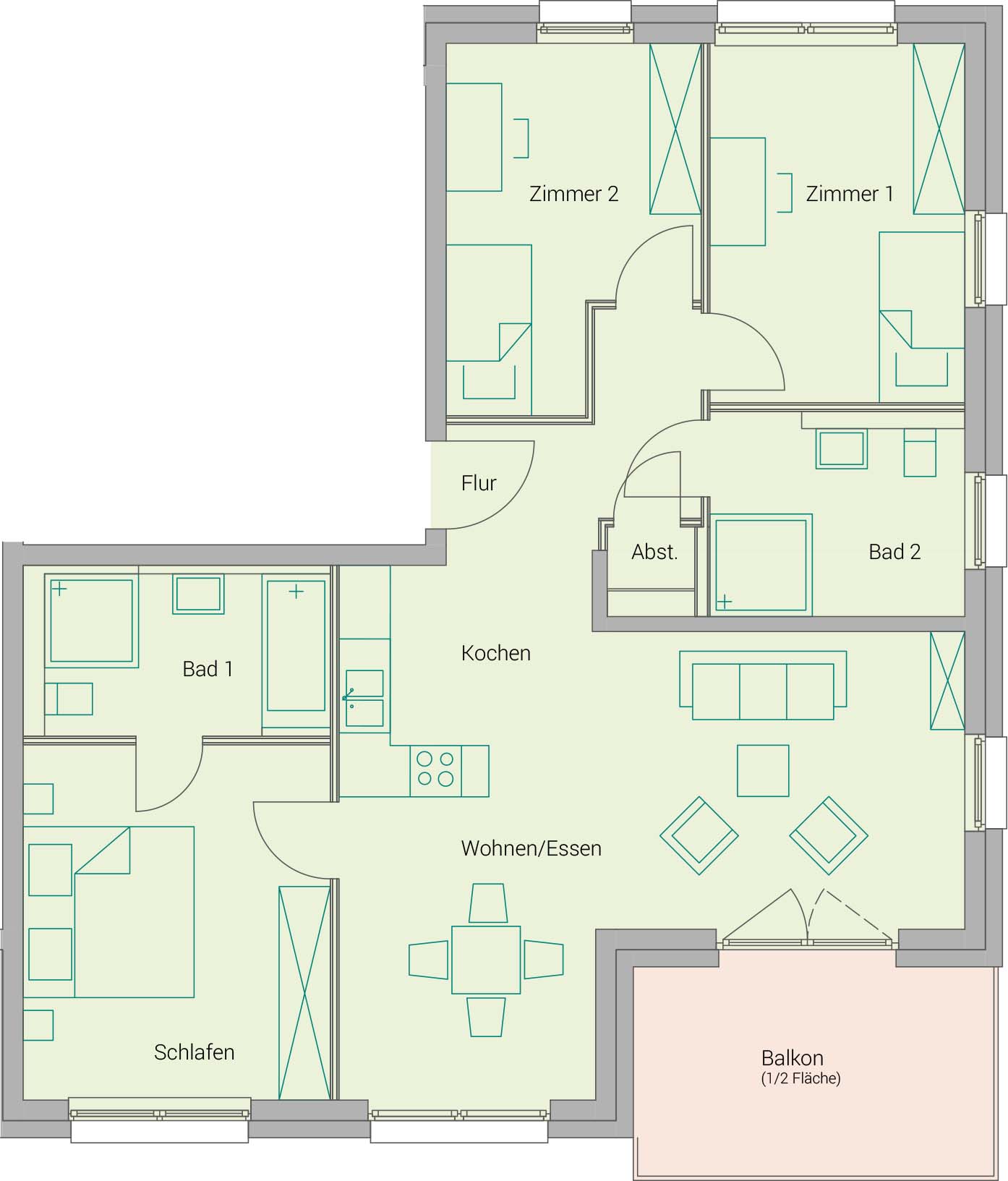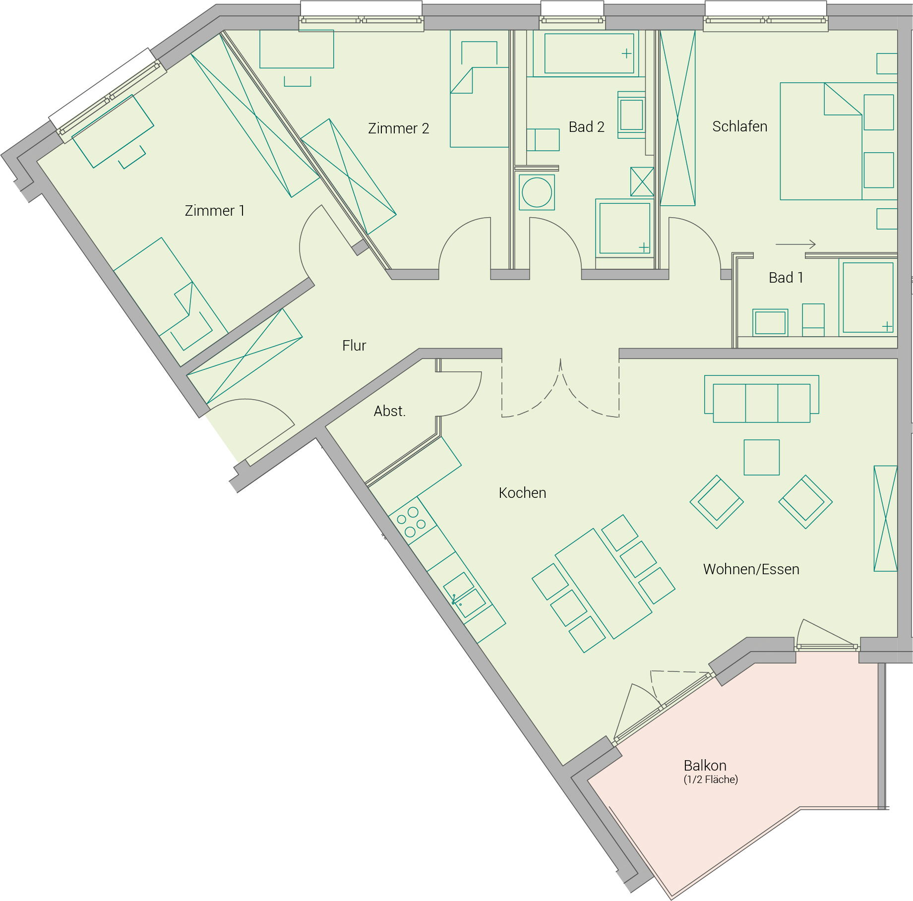 Unsere Musterwohnung gibt Ihnen einen Eindruck von der durchdachten Architektur und hochwertigen Ausstattung in Green Living. Gestalten Sie Ihr Zuhause nach Ihren Wünschen – modern, nachhaltig, individuell.